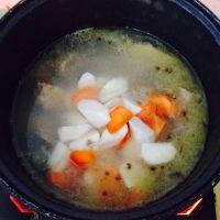 9.放入炖大火煮开转中火炖8分钟左右,山药和胡萝卜软烂即可。