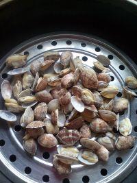 2.锅里加入一点水,蛤蜊隔水蒸制。