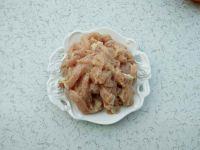 3.瘦肉切丝,加入适量水淀粉、盐、料酒、胡椒粉、花椒粉、酱油腌制10分钟。