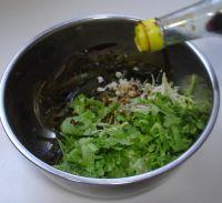 5.苦苣、海带丝、蒜末放一个盆里,加入适量的辣椒油