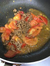 4.把锅清洗干净后,放入适量植物油,烧热后放入西红柿翻炒出汁。如果汁水不多可以适量加些水。