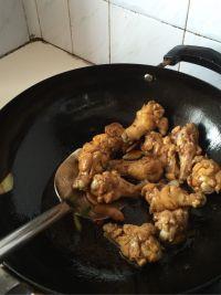 7.把鸡翅根下锅,倒入料酒生抽老抽,翻炒均匀